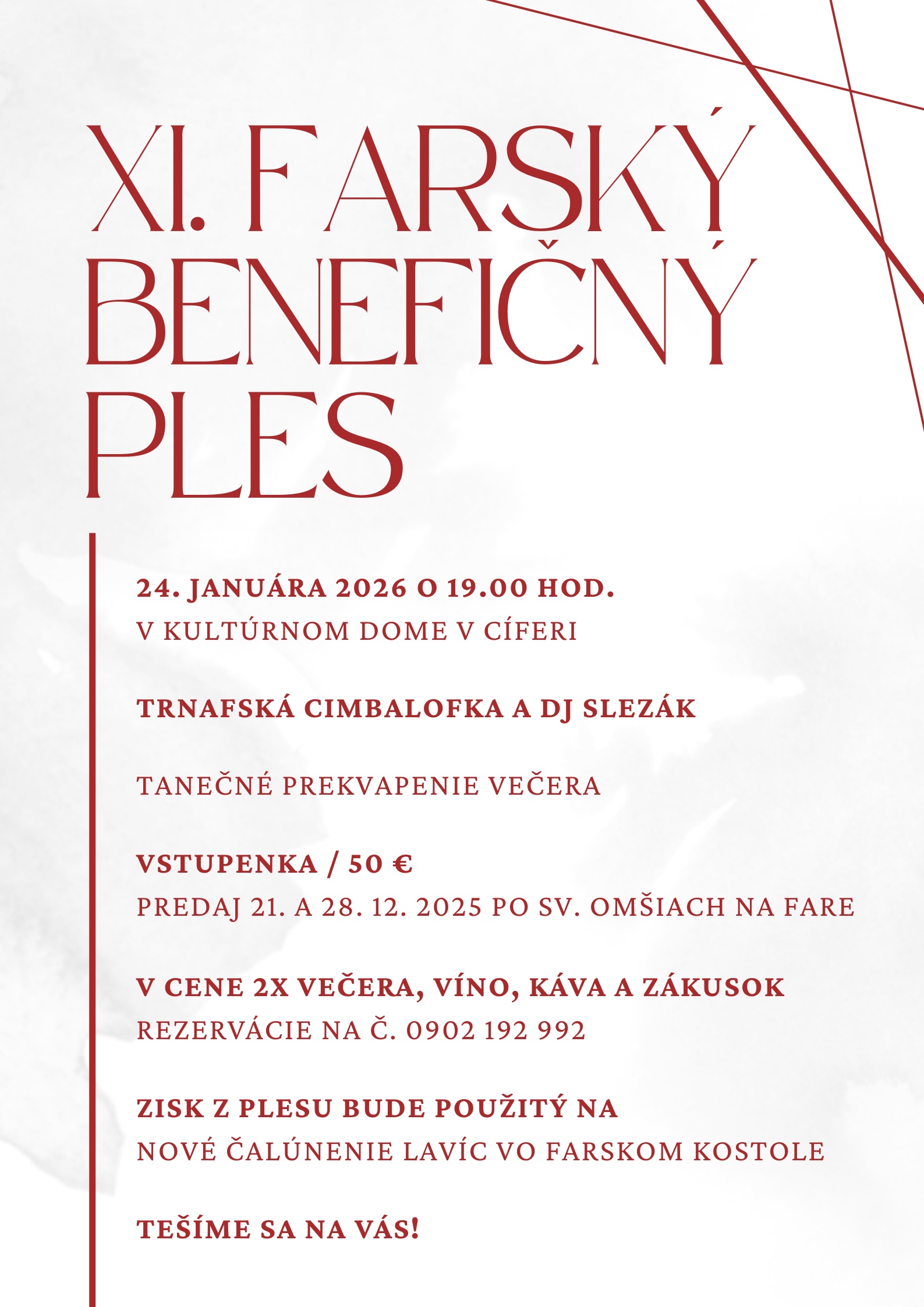 Srdečne vás pozývame na 11. farský benefičný ples,